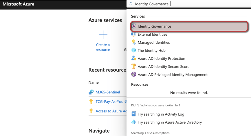 2. Search for Identity Governance