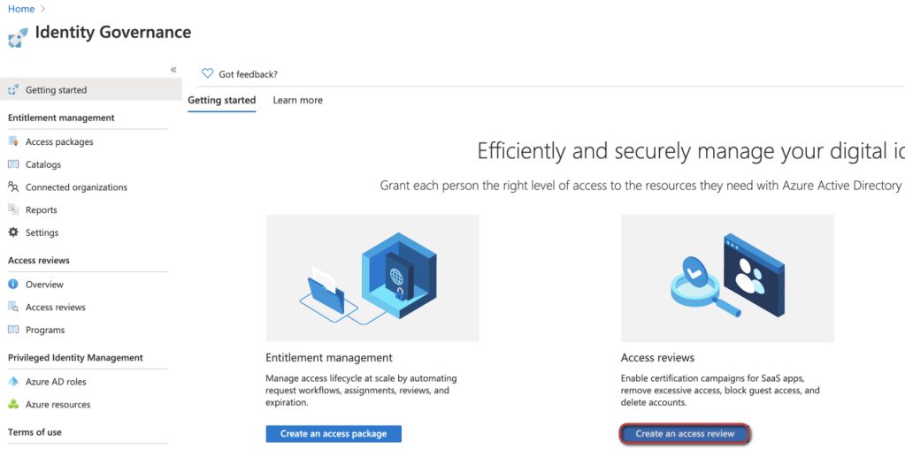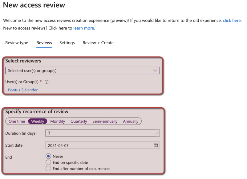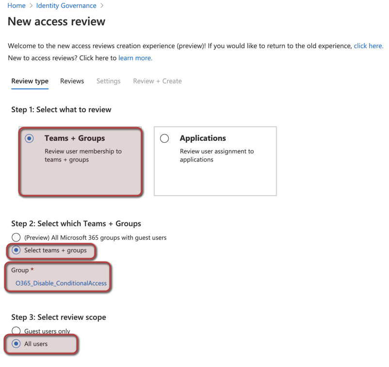Let’s move forward and configure our first access review