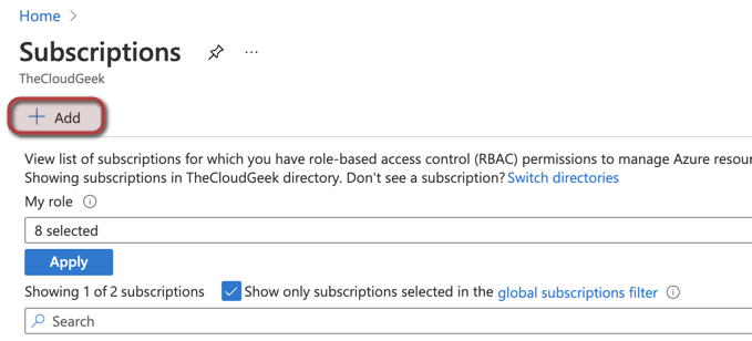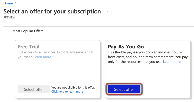 Since this is done in a demo environment, we will simply add an “Pay-as-you-go” subscription, this might be relevant to small organizations as well: