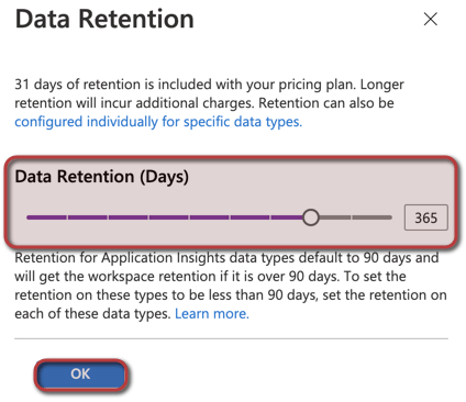 Now we need to configure the data retention for our dedicated log analytics workspace we have configured.
