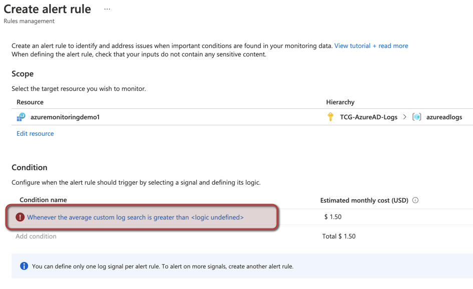 Creating alert within Azure Monitor