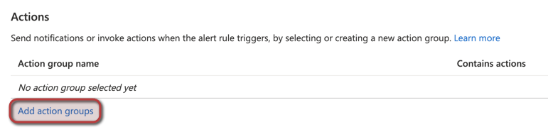 12. We will not configure any actions on this action group, go ahead and click review and create