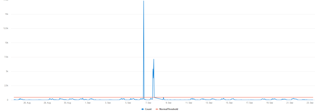 Here, we identified two instances of unusual spikes in the number of sent emails from our SMTP connector. Now, let’s conduct tests with different normal thresholds to determine the appropriate level for setting a baseline.