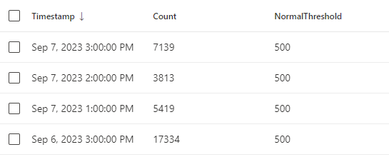 Now we need to edit the KQL query, to only detect when the normal threshold value have been breached on an hourly basis